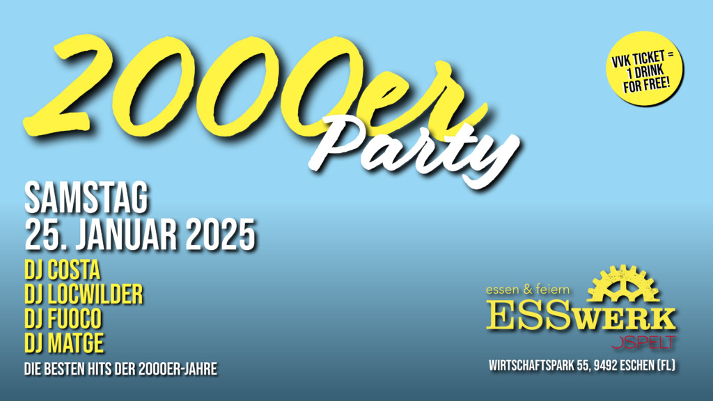Samstag 25.01.25 – 2000er Party @ ESSwerk in Eschen (FL)